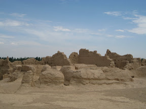 But we did spend an interesting day visiting two towns nearby Turpan. The first was Jioahe, a 2000 year old former garrison town, perched on top of a steep sided plateau that had been created by a fork in the river. Amazingly intact considering its age, it is possible to walk around what were clearly once streets and see the exact layout of the town.