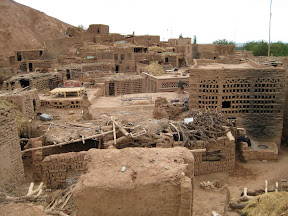 Beyond these 'sights' there was little to do other than wander around the few oasis towns and surrounding countryside where the bus stopped and I would spend the night. Each town had a street market that was alive with a Central Asian buzz and the irrigated outskirts were made up of lanes of flat roofed mud houses, each with livestock outside and wheat or maize smallholdings nearby.